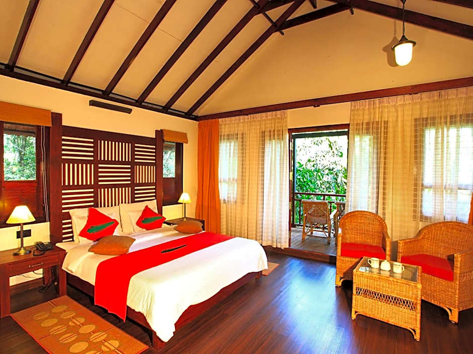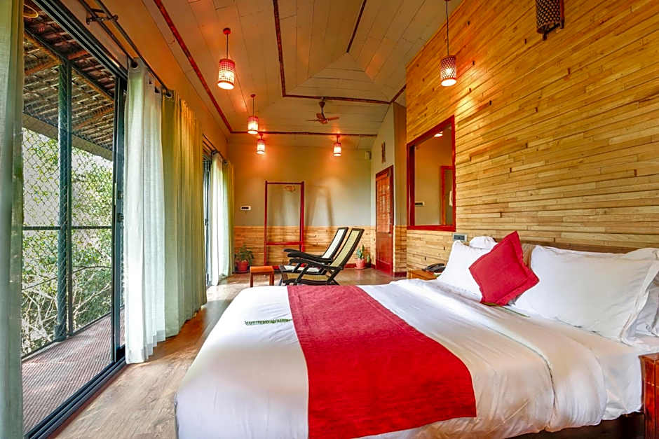 The fan-cooled rooms come with a desk and wardrobe. The attached bathrooms include shower and free toiletries. This room cannot accommodate children or extra adult. Tree House Rules • No food is served in the tree house • Away from the main campus • 04 Tree House located at a height up to 90 ft. above the ground • 01 Family Tree house located at a height of aprrox. 35 ft. above the ground (Close to the Restaurant) • The tree houses are accessed via an exclusive single stairway / hang bridge • Only couples in a robust state of health are advised to reside in the tree houses • Consumption of liquor and smoking in the tree houses are strictly prohibited • Help us conserve electricity with minimal consumption • Visitors are not allowed into the tree houses • Please deposit heavy luggage at the locker provided • On request separate jeeps are provided for guest to the tree houses • Only 2 adults ( couple ) allowed